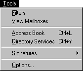 ToolsAll the Eudora Tools are listed in this menu. Select one to open it. |