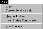 HelpThe Eudora Help menu and About Eudora screen are listed in this menu. |